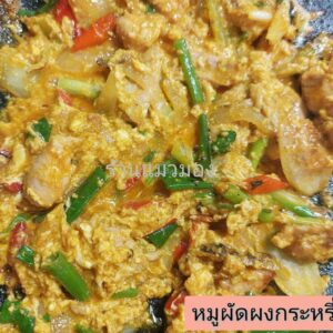 หมูผัดผงกะหรี่ราดข้าว-ร้านแมวมอง