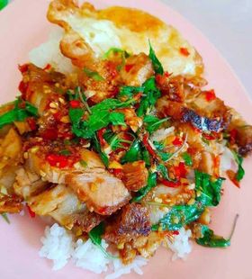 ผัดกระเพราราดข้าว-ร้านเอ็มดีผัดไทย